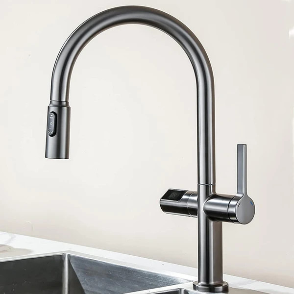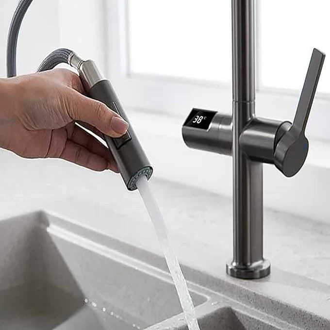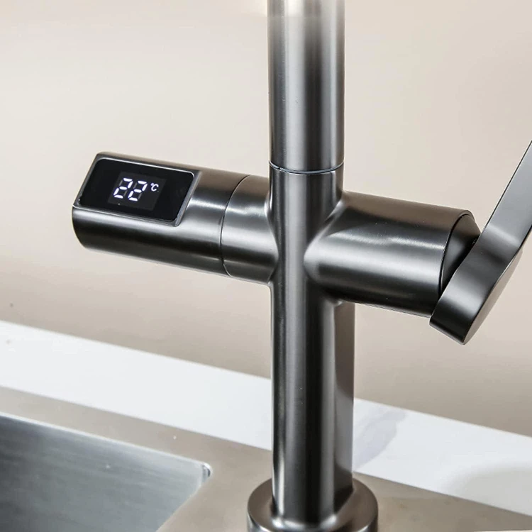 شیر ظرفشویی هوشمند برند HuaDiao یک محصول پیشرفته با طراحی آیندهنگر است که با نمایشگر دیجیتال دمای آب و شاوری کشویی متحرک، تجربهای متفاوت از شستشو در آشپزخانه را ارائه میدهد. این شیر با کنترل دما در لحظه، صرفهجویی در مصرف آب، و طراحی زیبا برای آشپزخانههای مدرن و هوشمند ایدهآل است.